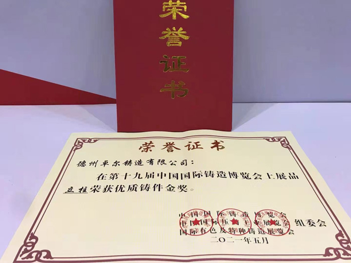 熱烈祝賀我公司參展產(chǎn)品在第十九屆中國國際鑄造博覽會上榮獲優(yōu)質(zhì)鑄件金獎。